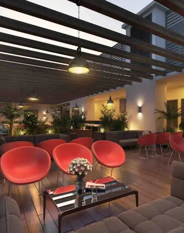 • Rooftop infinity swimming pool and terrace lounge with panoramic city views.