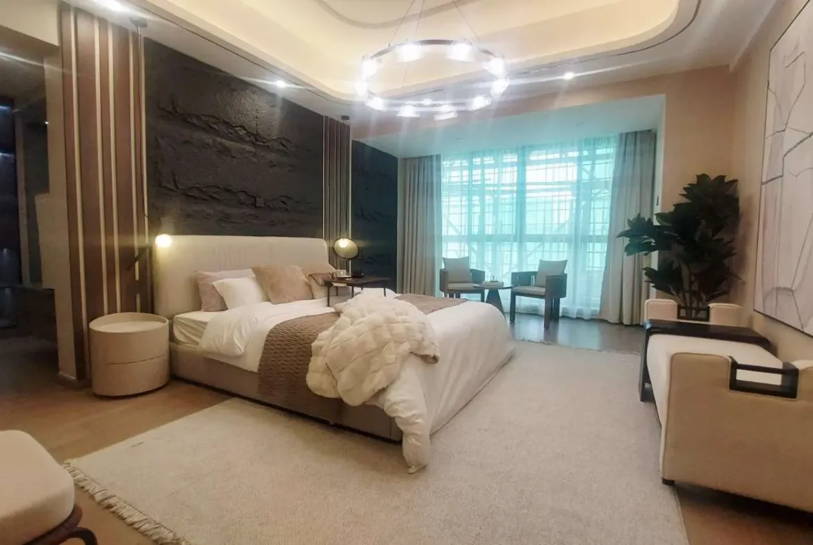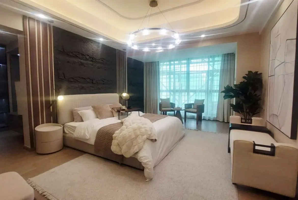 Top-tier luxury featuring a private lift, 5 en-suite bedrooms, study, DSQ, closed kitchen, and two balconies (lounge + master). Designed for refined living with maximum privacy, space, and sophistication in Kileleshwa.