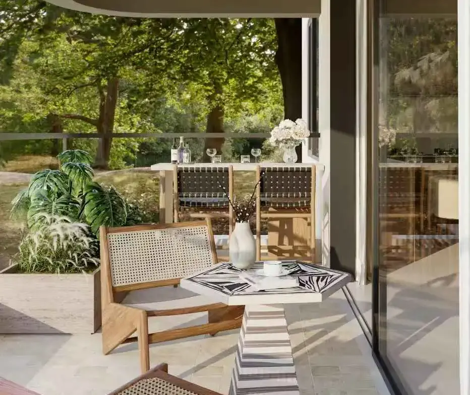 Block A: Balconies face the main road, overlooking an upscale 5-storey residential building with no obstruction. The view is oriented uphill, ensuring openness and privacy.