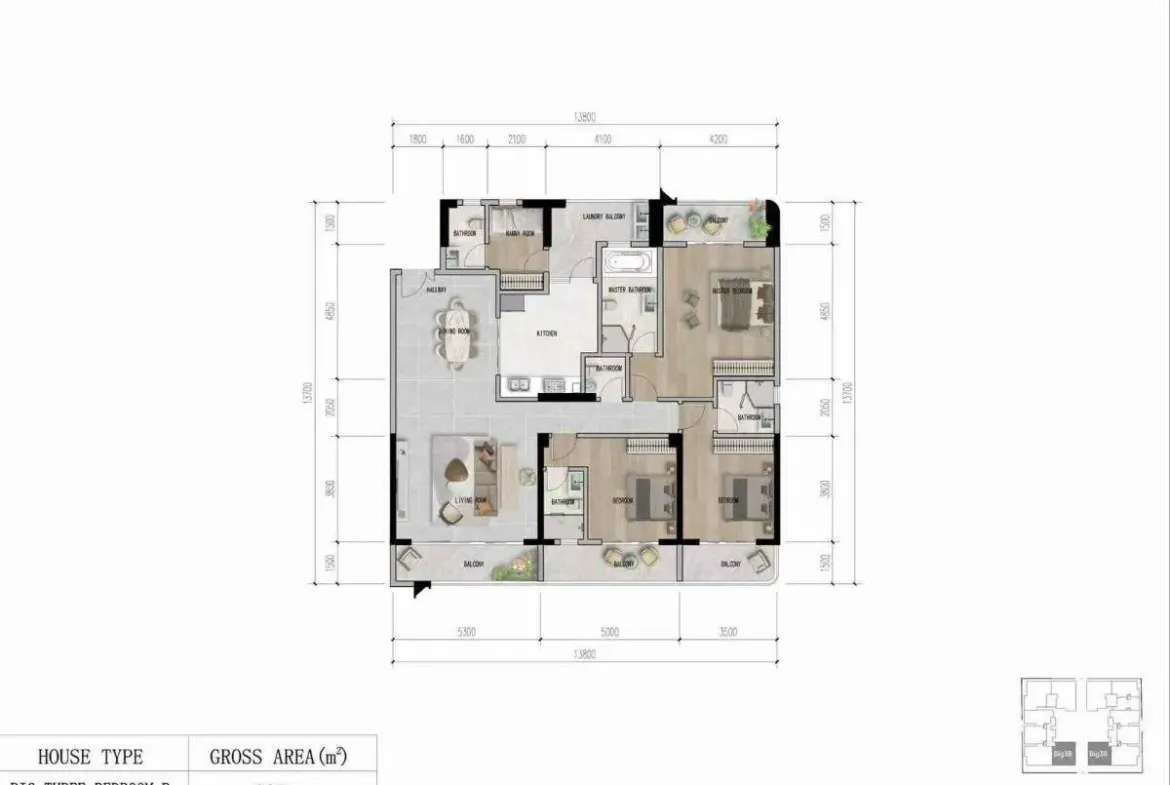 • 3 bedroom all en- suite  Small A 158 SQM @ 15.8 M