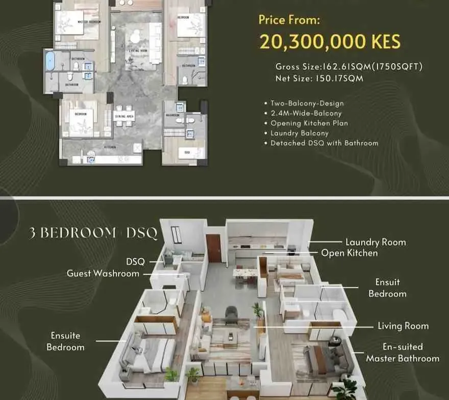 - 3 bedroom Plus Dsq of 169 sqm @ 22.5 m