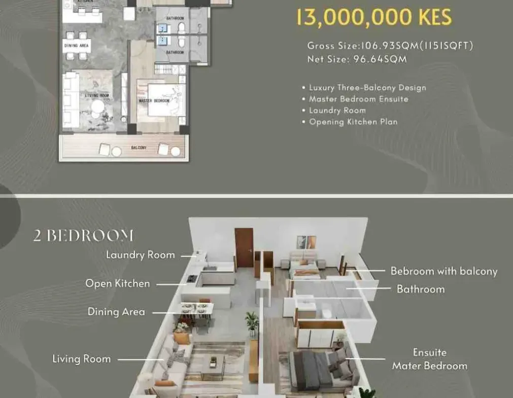- 2 bedroom of 101 sqm @ 13 m