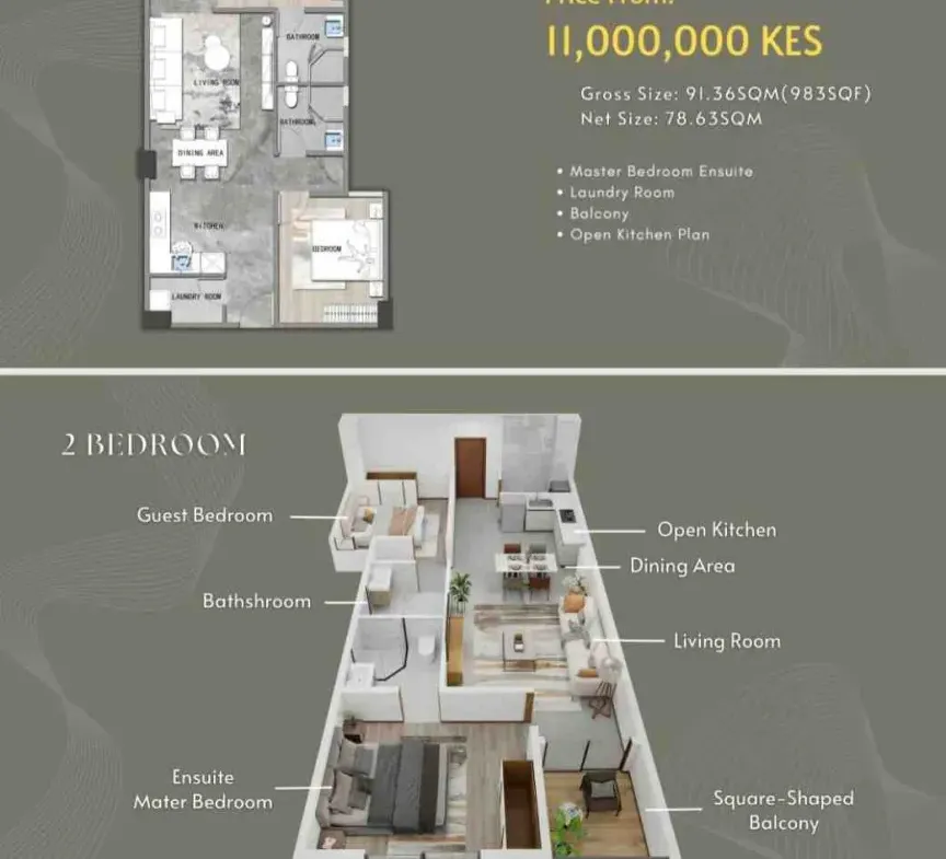 - 2 bedroom of 88 sqm @ 11.5 m