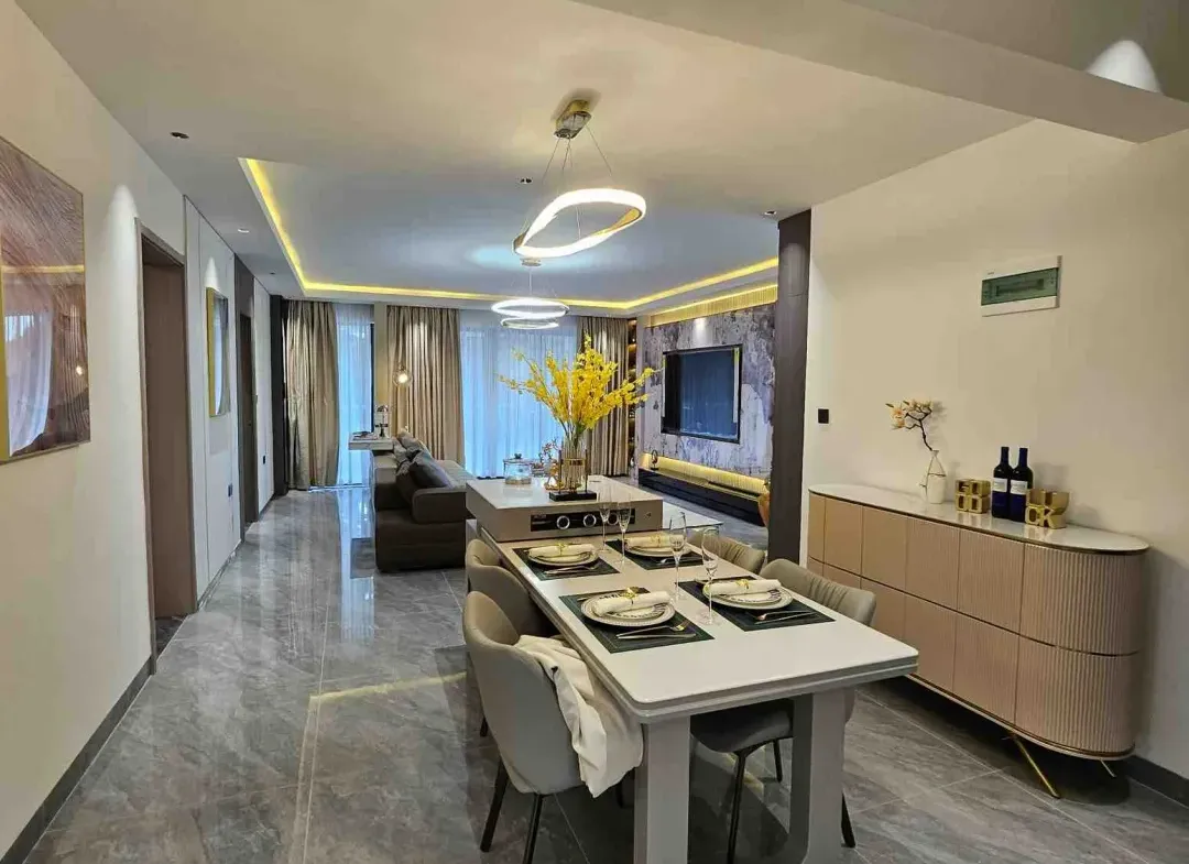1. Living Room: Expansive lounge with elegant sliding doors that effortlessly unveil a capacious balcony, offering enchanting views.