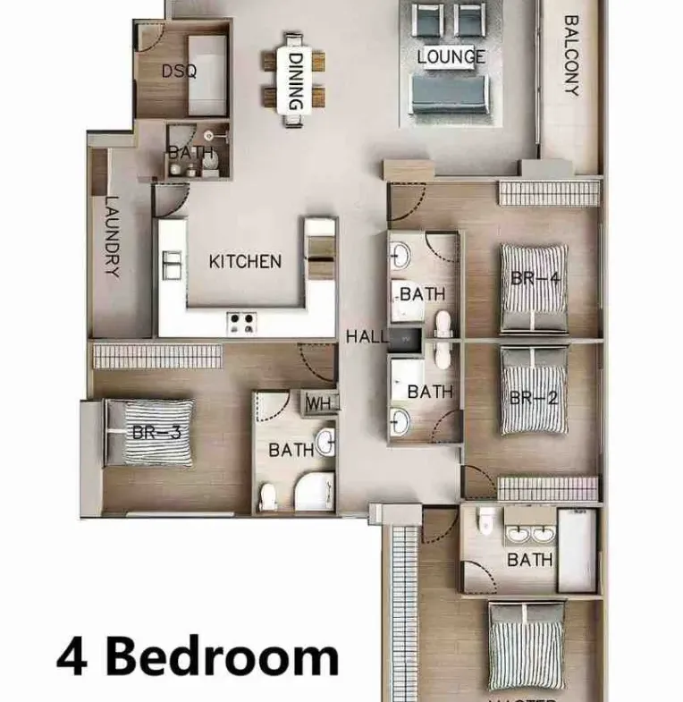 Comprises of 3 & 4 Bedroom Apartments :