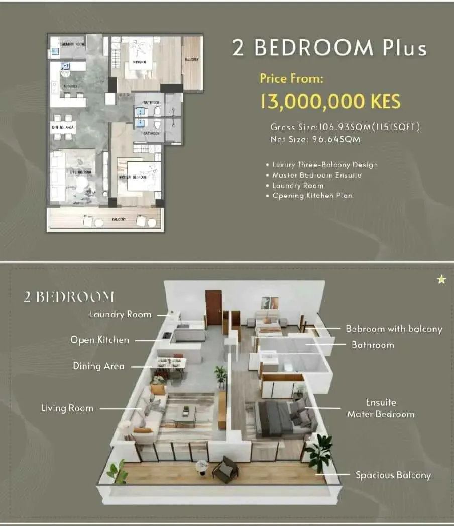- 2 bedroom of 101 sqm @ 13 m